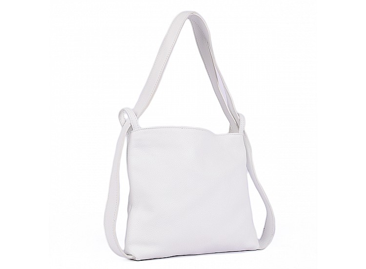 - Klasszikus: Egy merev falú, letisztult formavilágú fehér bőr táska időtálló eleganciát sugároz.