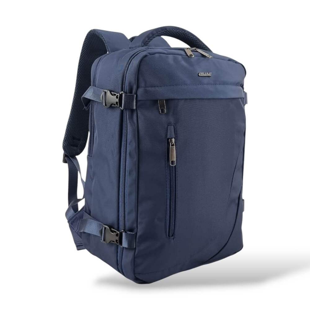 Repülőre ingyenesen felvihető kisméretű kézipoggyász hátizsák sötétkék színben.