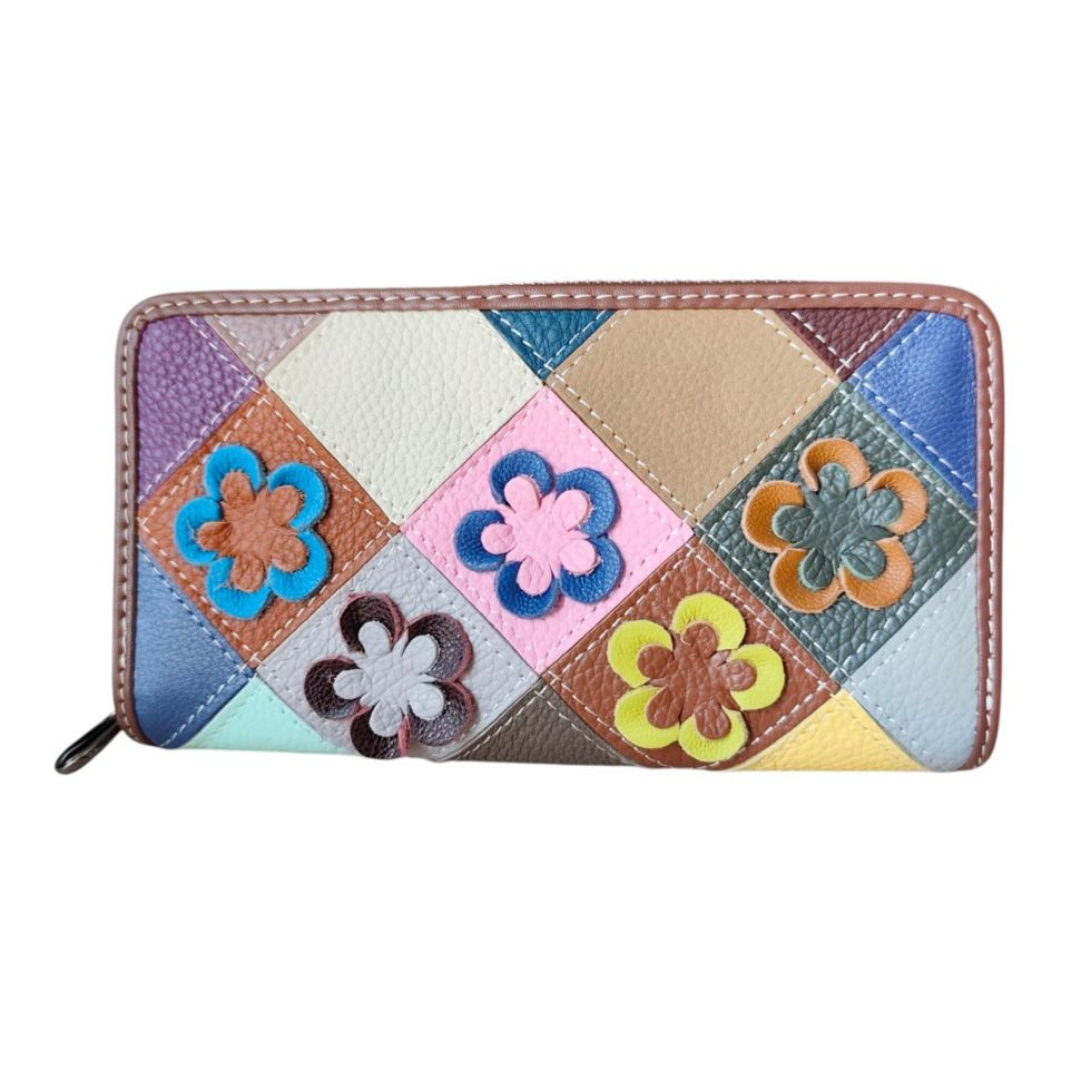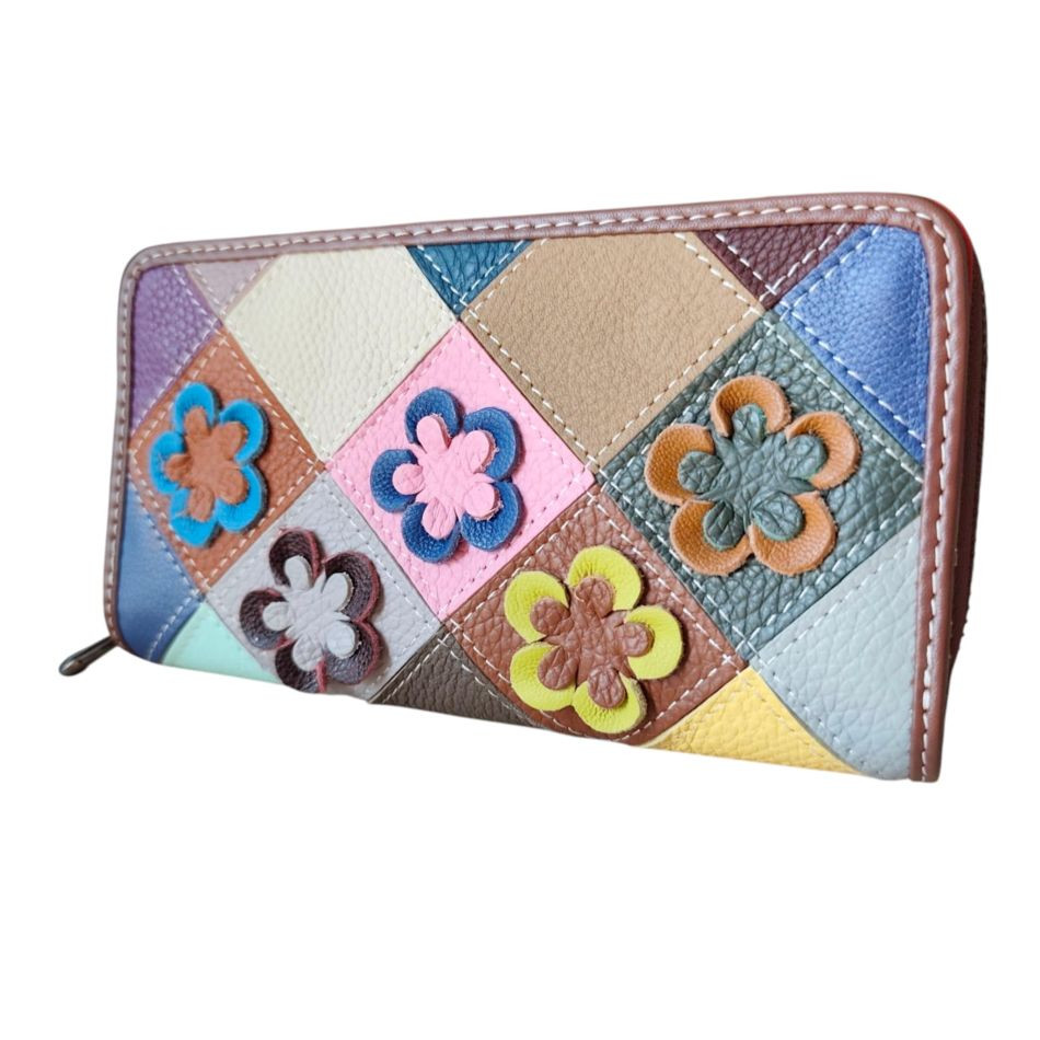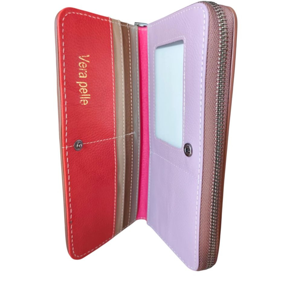 Zenta valódi bőr női pénztárca nagyméretű egyedi színes pink kék