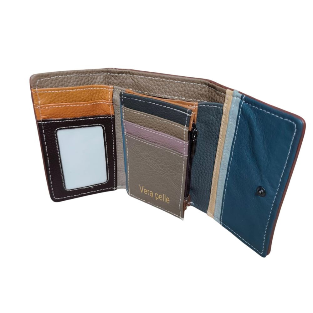Valódi bőr női pénztárca, kisebb méretű, ám sok kártyatartós.