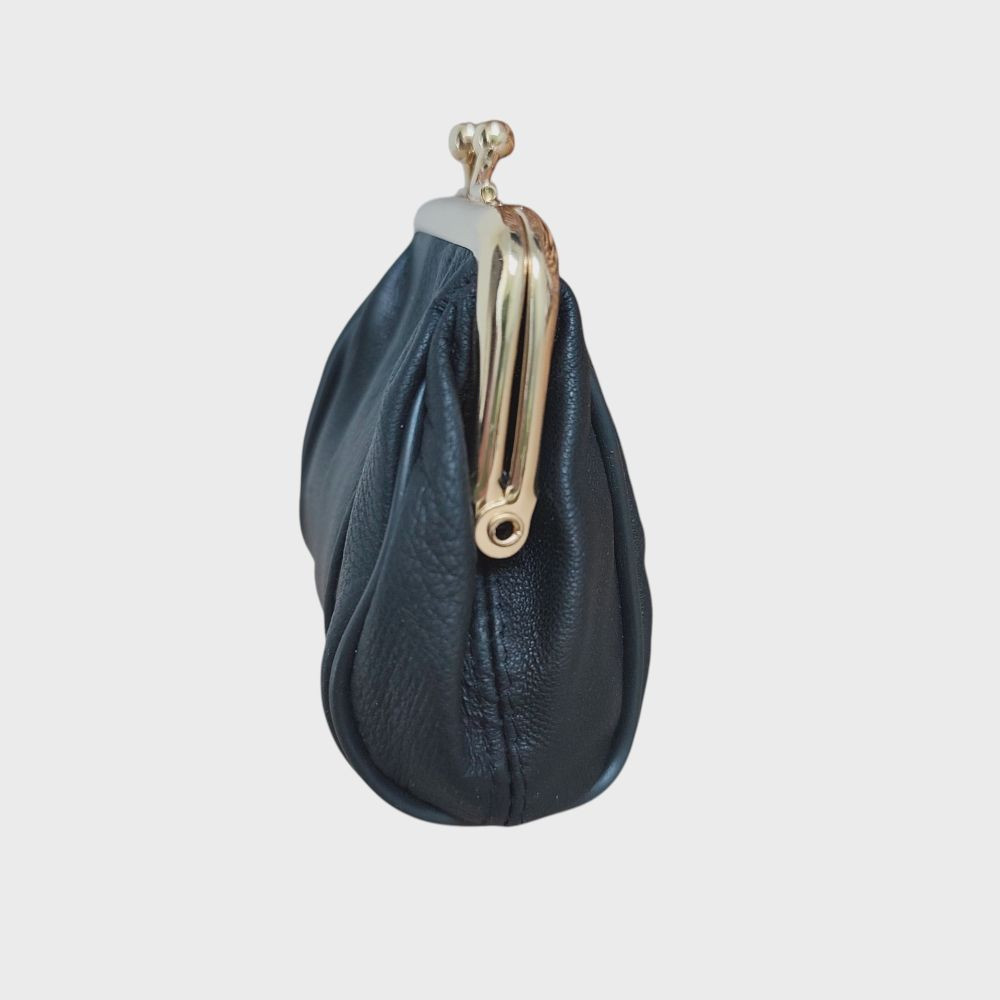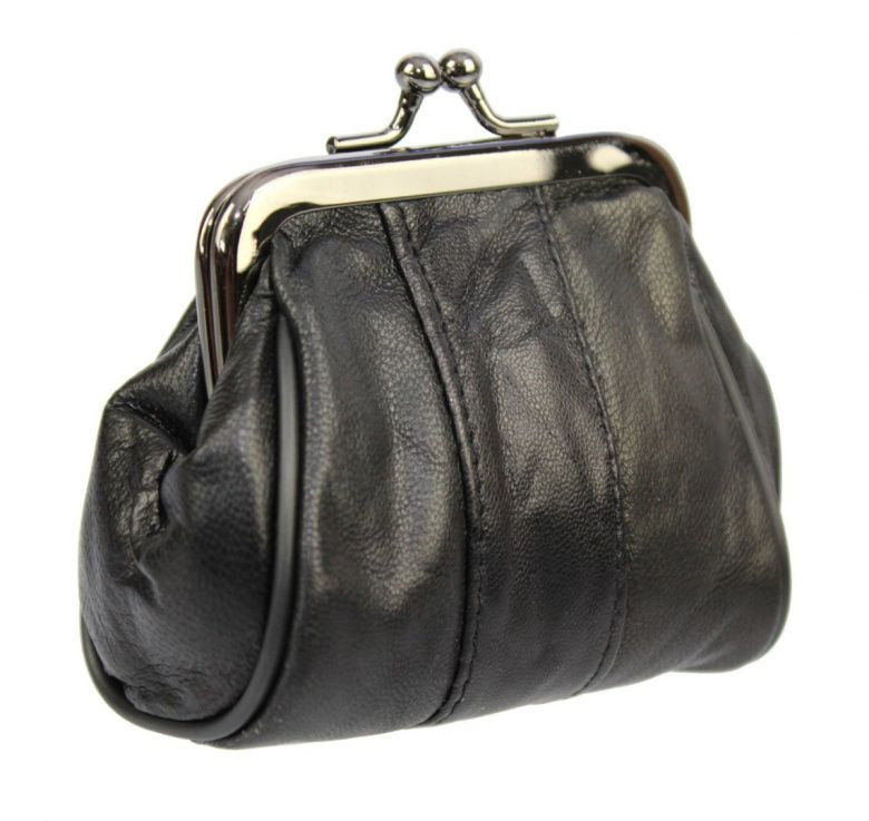 Valódi bőr női pénztárca fekete csatos retro aprópénztartó bugyelláris kisméretű