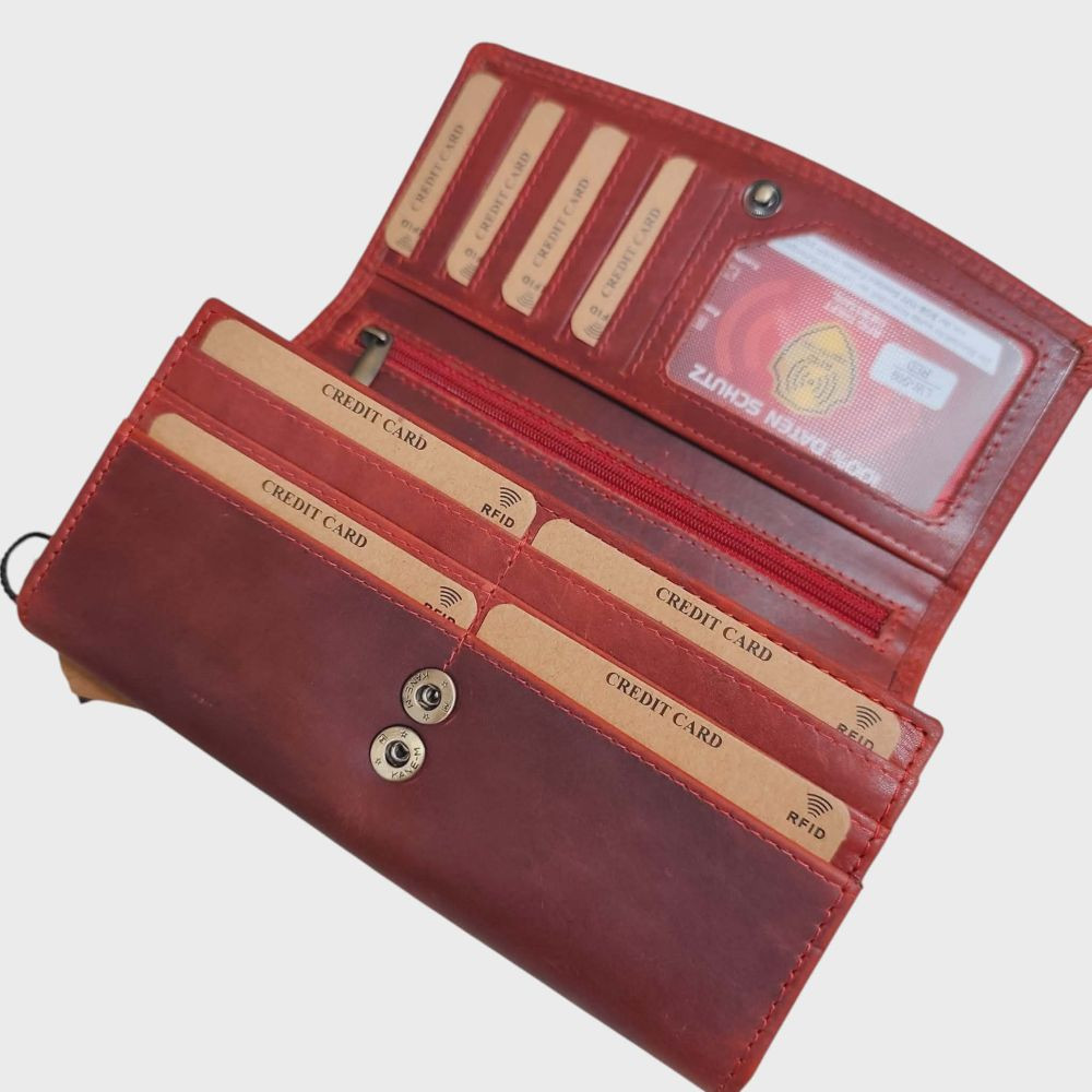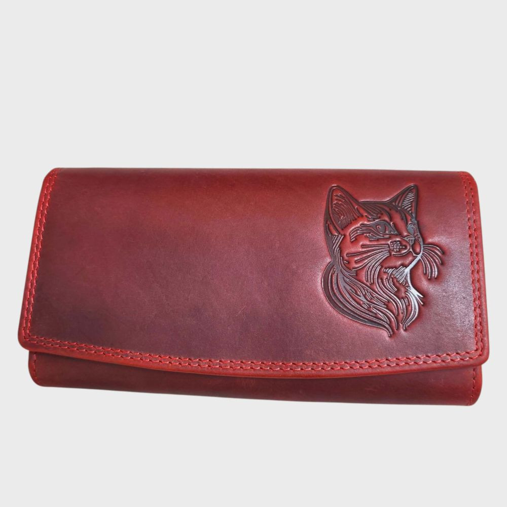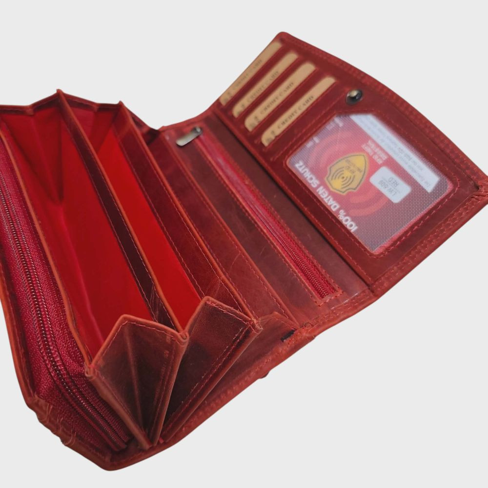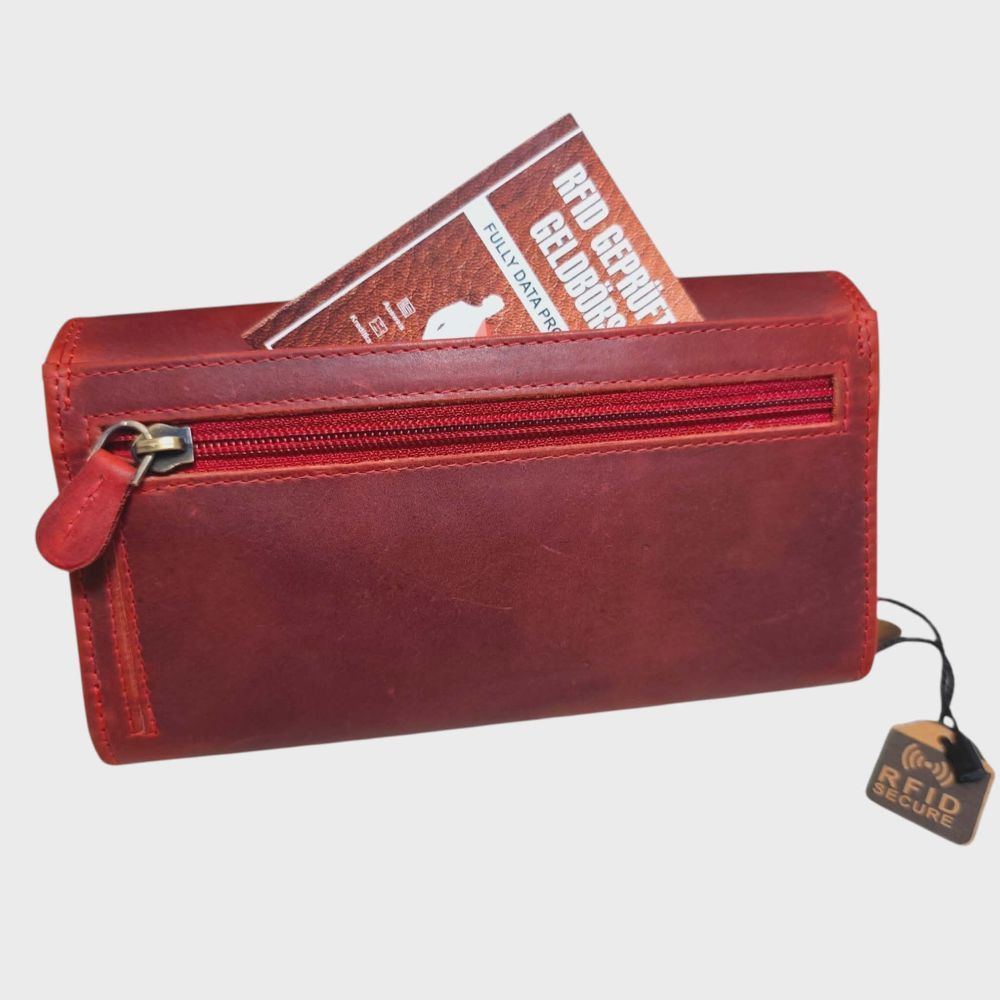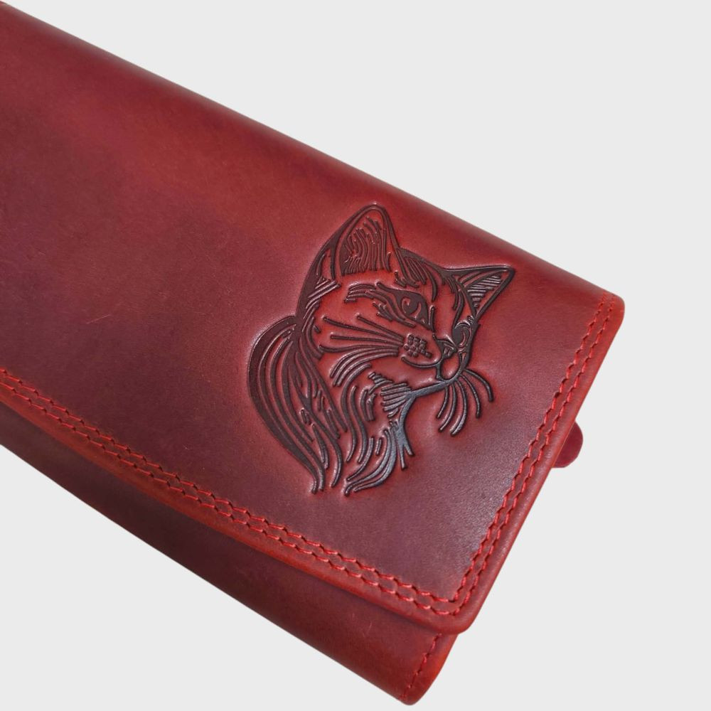 Cica valódi bőr női pénztárca piros nagyméretű RFID