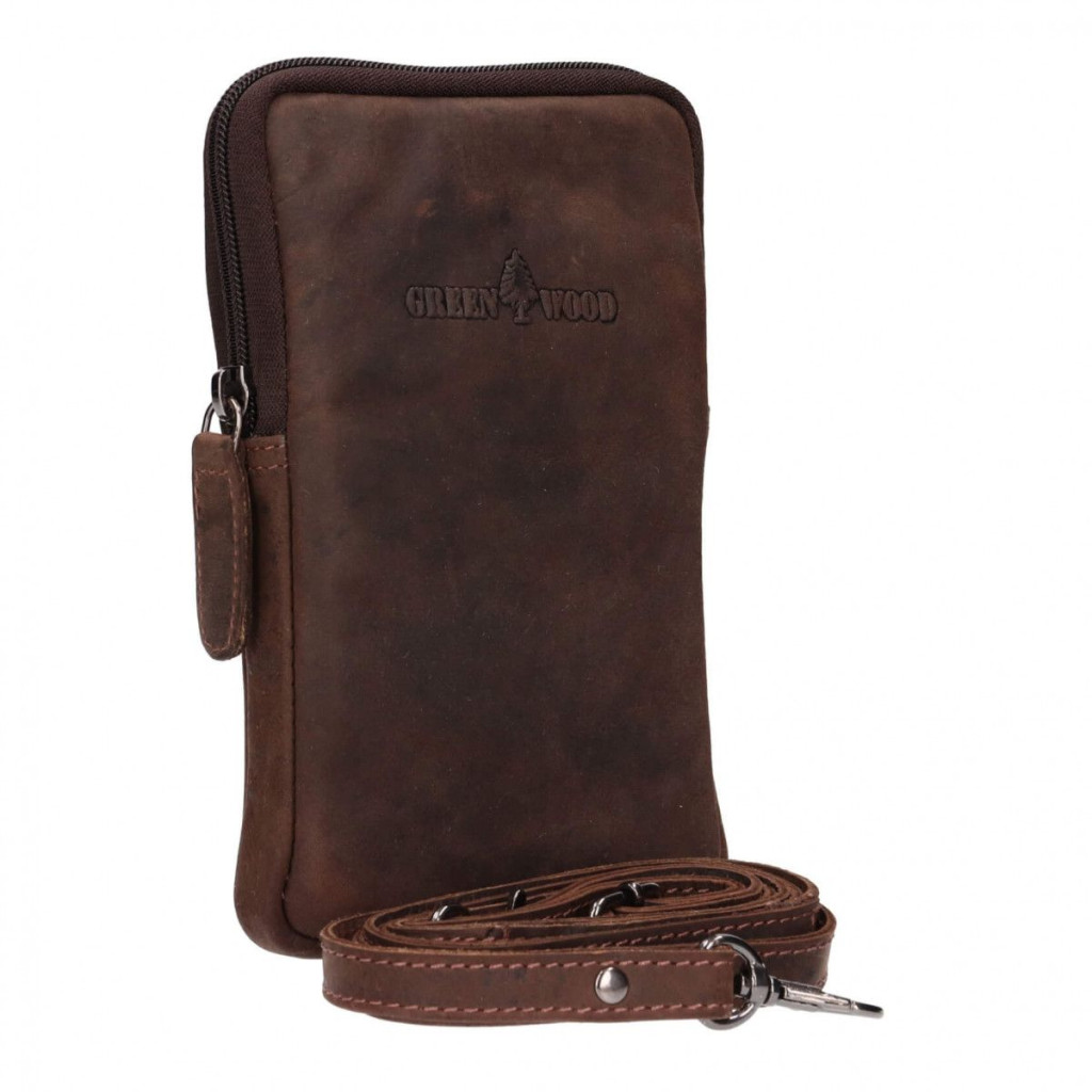 Green Wood valódi bőr kis oldaltáska sötétbarna többfunkciós