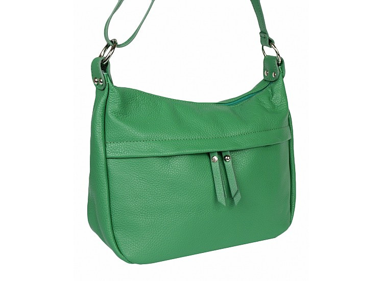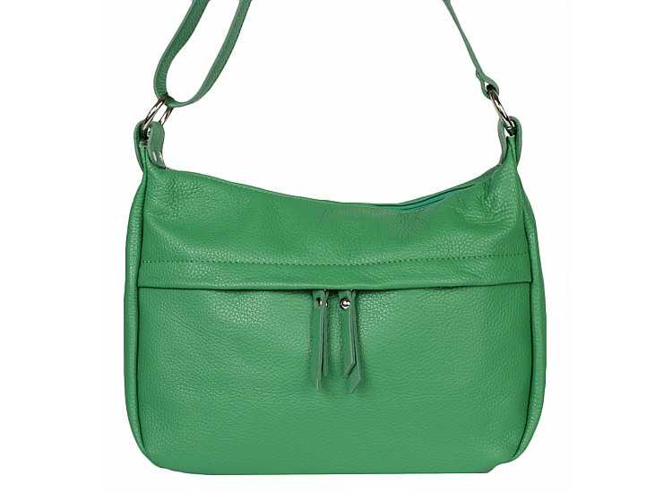 Valódi bőr női táska zöld színben, több zsebbel.