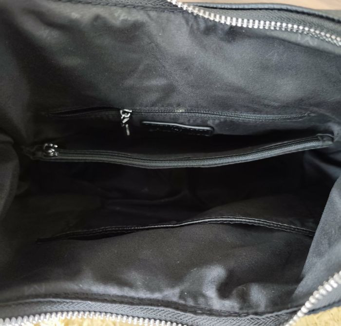 A táska osztott belső tere segít átláthatóan rendszerezni a napi kellékeket. Két cipzáras zseb biztonságos tárolást biztosít kulcsoknak, iratoknak vagy kozmetikumoknak, míg a két nyitott zseb ideális mobiltelefon, zsebkendő vagy bérlet számára.