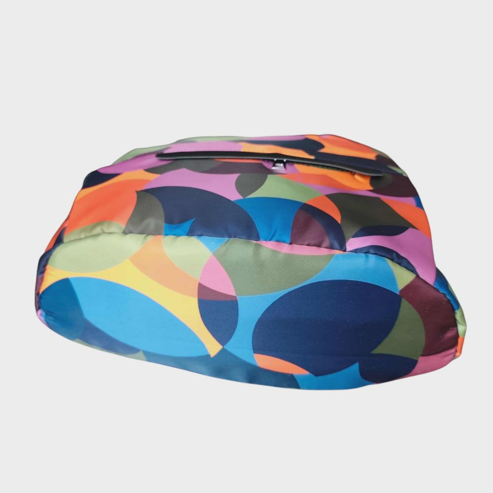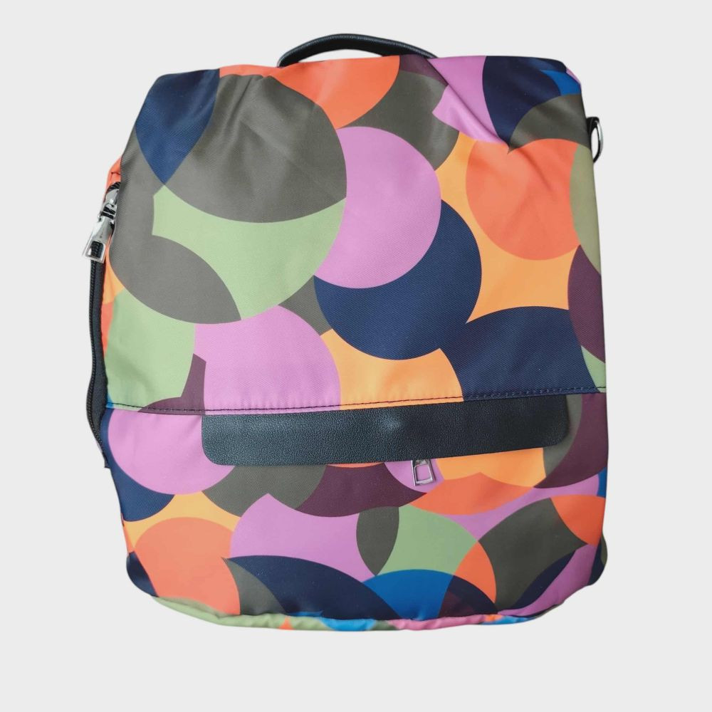 A modern, kör alakú motívumokkal díszített design és a merész színkombináció (pink, narancs, zöld, kék, lila, fekete) garantáltan magára vonzza a tekinteteket. Praktikus kialakításának köszönhetően ideális választás városi kalandokhoz, iskolába, utazáshoz vagy akár fesztiválra is. Lopásbiztos a kialakítása, nem lehet kinyitni a fő rekeszt csak akkor, ha leveszed a hátadról.
