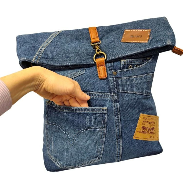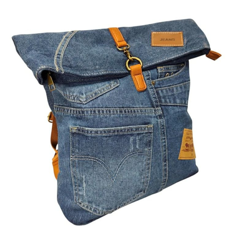 Női hátizsák farmer különleges divattáska kék sokzsebes