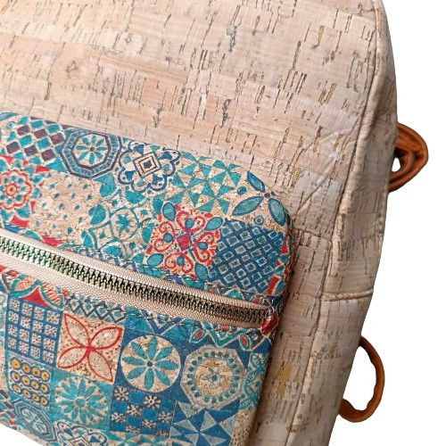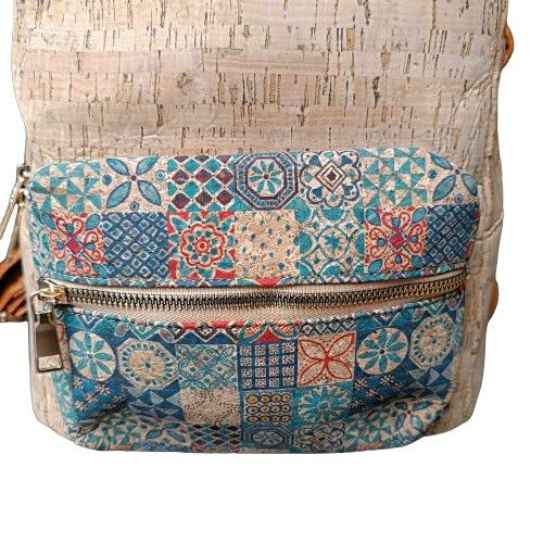 Az itt látható női parafa hátizsák 2 külső cipzáras zsebbel endelkezik, s belső terében is találunk 1 cipzáras és 2 nyitott mobiltartó rekeszr.