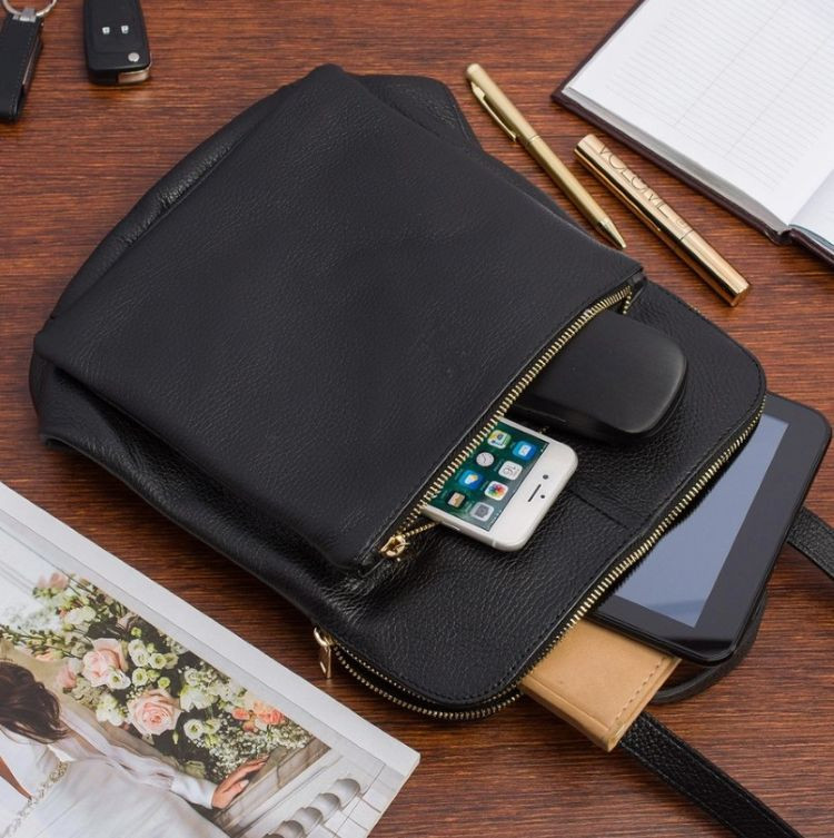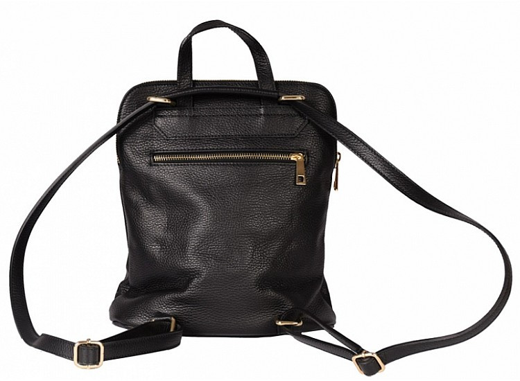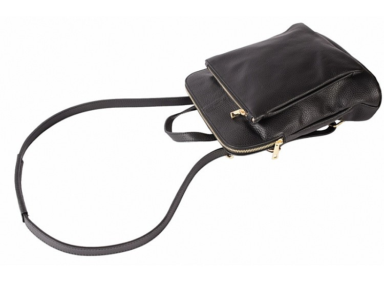 Vulfia női hátizsák és válltáska egyben valódi bőr fekete