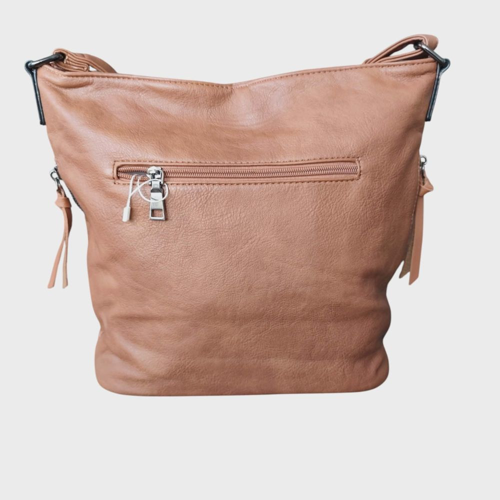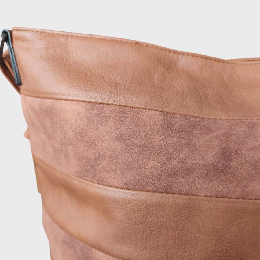 A modern eco bőr technológiának köszönhetően a táska megjelenése és tartóssága vetekszik a valódi bőrével, miközben etikusabb választás.