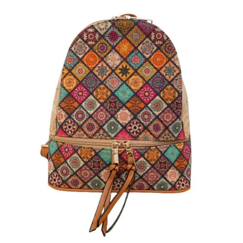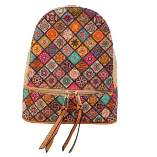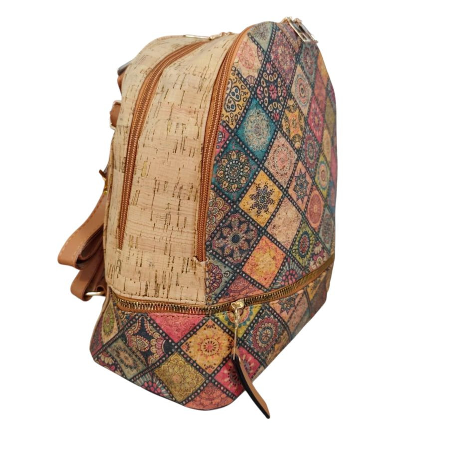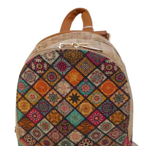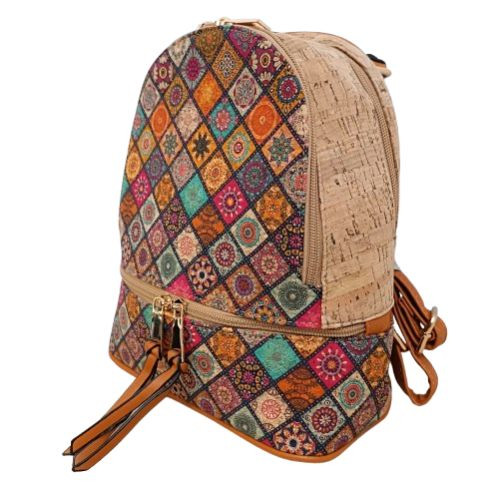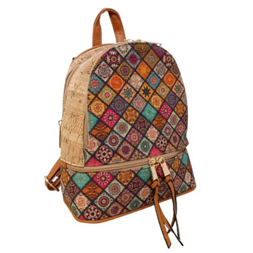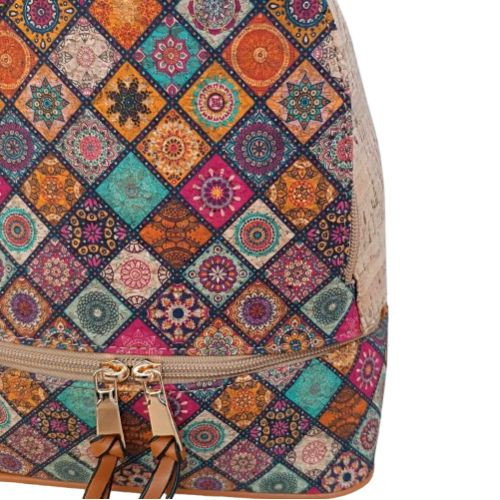 Mona női hátizsák parafa anyagból különleges patchwork mintával