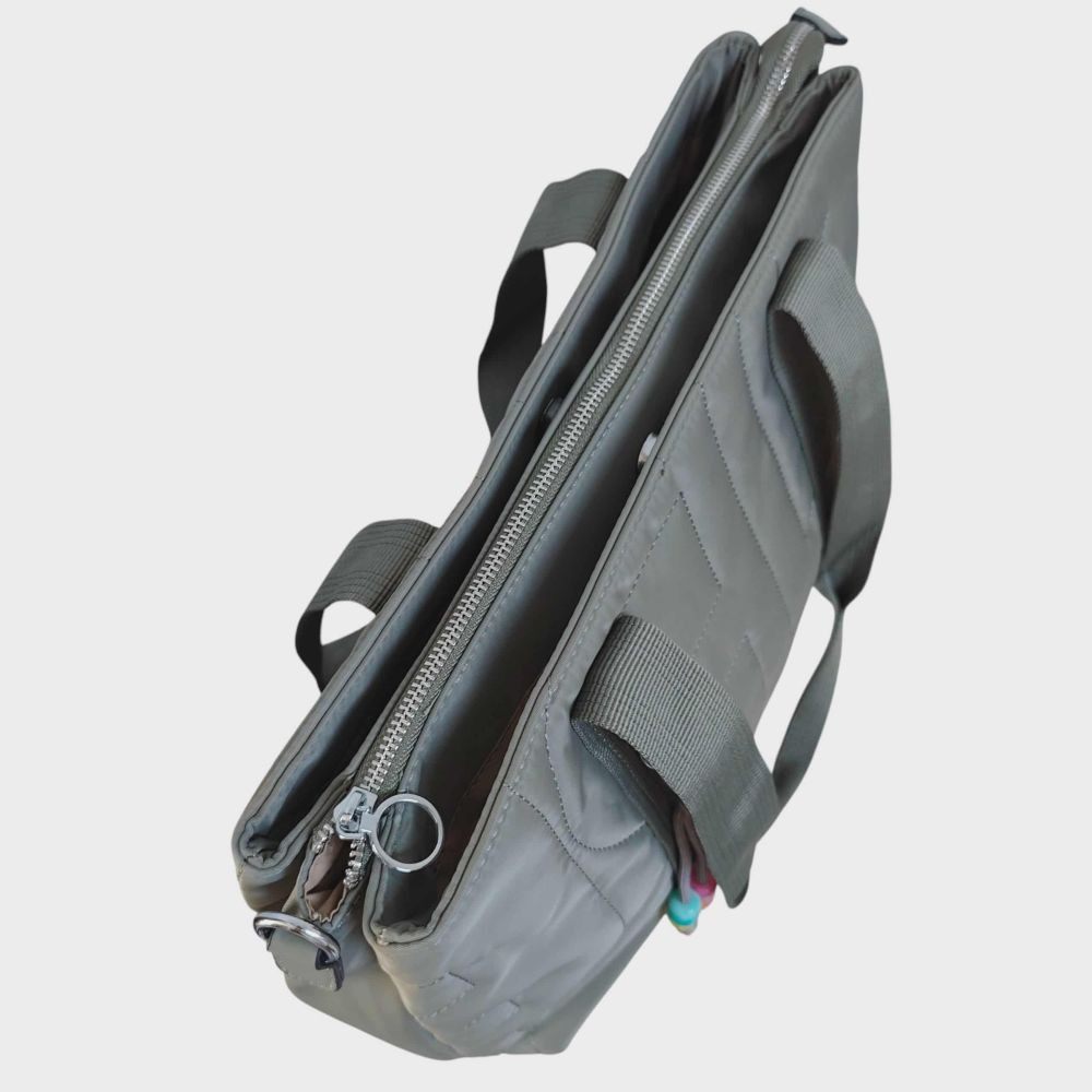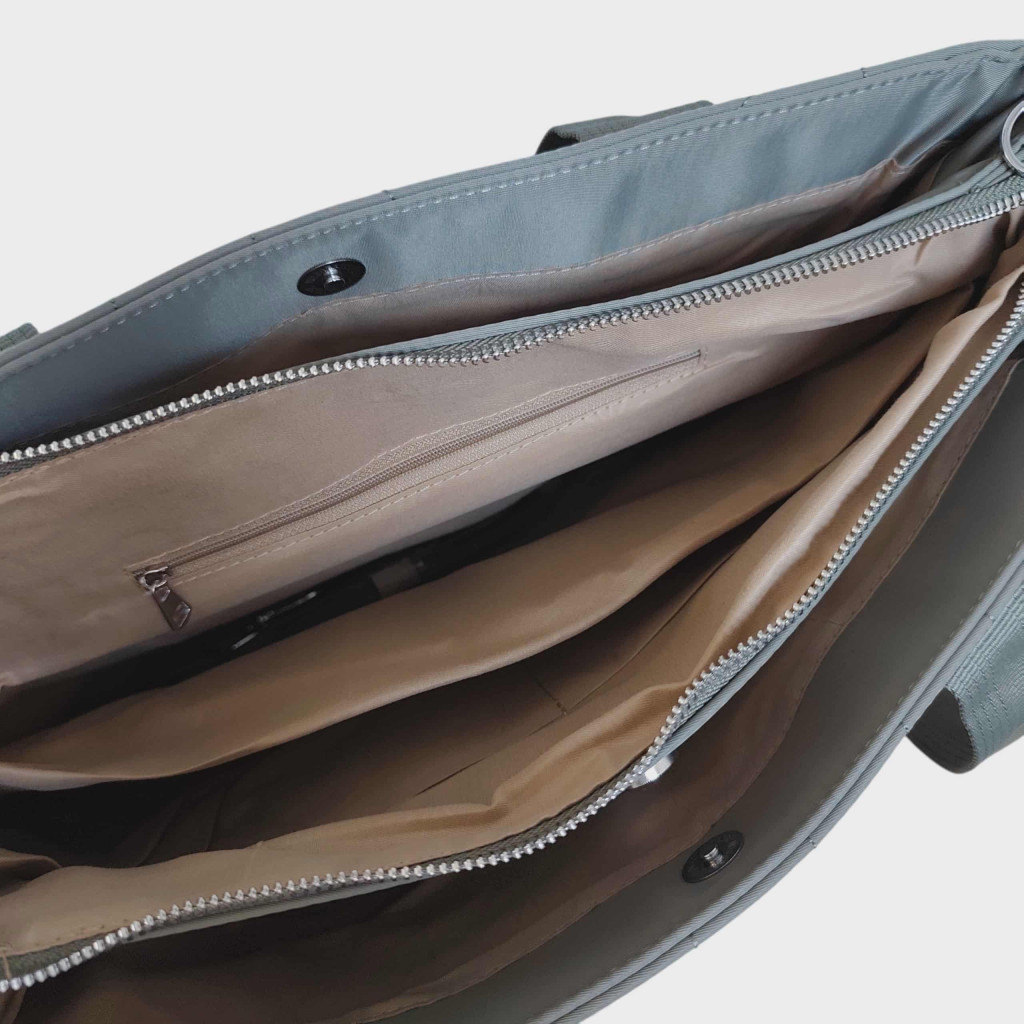 Nagyméretű női válltáska laptop + ipad, vagy tablettartó rekesszel, khaki zöld színben.
