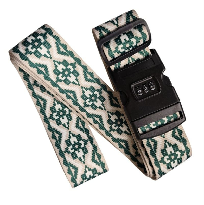Bőröndpánt számzáras biztonsági poggyász heveder zöld bézs