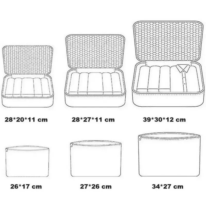 Ez a praktikus megoldás nemcsak ruhákhoz ideális: a szett egyben kozmetikai és ruharendező szett, így a bőrönd minden része átláthatóvá válik. A különböző méretű elemek segítségével könnyedén kialakíthatod a saját rendszerezési módszeredet, legyen szó rövid hétvégi útról vagy hosszabb nyaralásról.